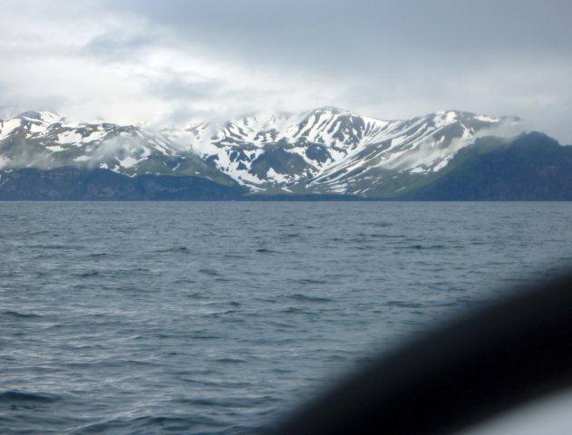 Spent two days close inshore at Jan Mayen, the first sailing up the east coast, the second becalmed off the North east end of the island. The scenery was magnificent, the only disappointment being that Mt Beerenberg, the 7000’ volcano that dominates the north end of the island, was permanently shrouded in cloud.