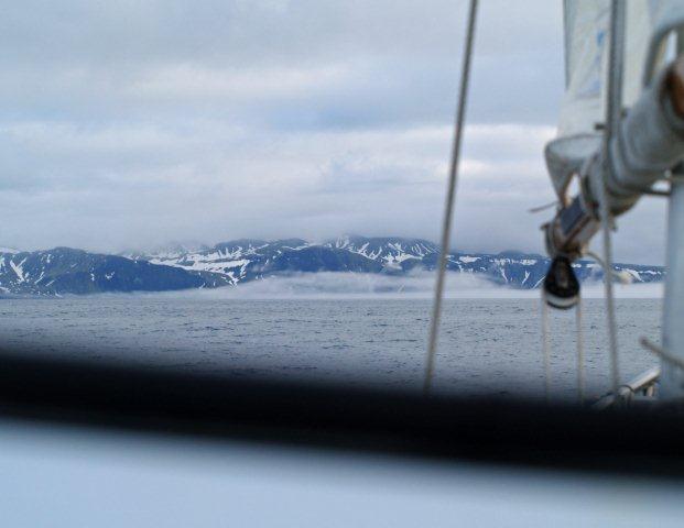 Sailing along the base of Mt Beerenberg, Jan Mayen