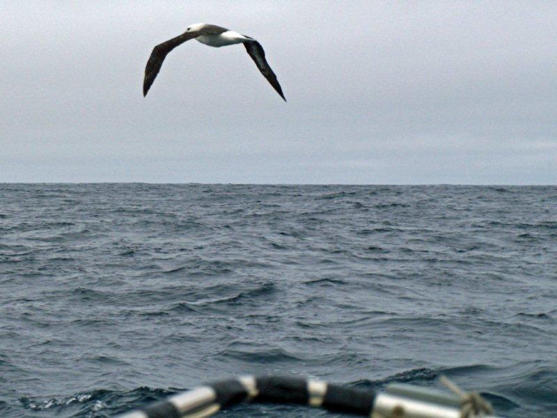 As someone with a fanatical interest in pelagic wildlife, and a lifelong ornithologist, the highlight of the voyage came at 1010H on Tuesday 13th July, when we had a very close encounter with, of all things, a black-browed albatross. Albatrosses are of course extremely rare in the northern hemisphere. As I was in bird photographer mode, brought on by many weeks spent in the wintering grounds of another southern hemisphere breeder, the great shearwater, I was quick enough to take four shots of the albatross, despite the whole encounter lasing not more than forty seconds. I now have a photograph I will treasure for the rest of my life – Mingming and an albatross in the same frame. Absolutely amazing. The black-browed albatross, by the way has an 8 foot-plus wing span.