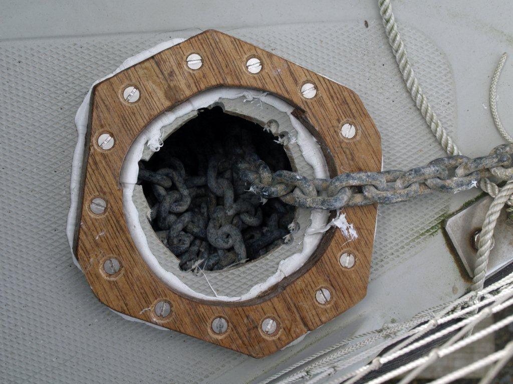 As part of Roger Taylor’s preparations for his 2011 voyage, Roger installed the new bigger chain-hawse shown below.