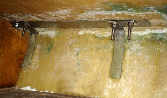 I’m replacing the U Bolts with 8mm versions on the bilge keeler complete with 25mm wide stainless steel straps as per the article on this site. However, I remain concerned about the integrity of the deck to hull join on both boats – and am adding glassed in vertical straps in a number of places along the join for peace of mind on the bilge keeler. I have yet to decide what to do with the fin keeler.