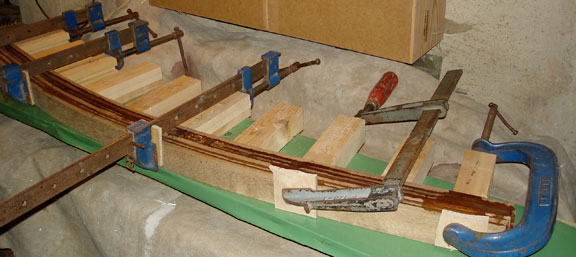 Radius the two bottom corners with a spokeshave – it will be laminated in place with epoxy and glass cloth, which won’t bend round a sharp corner.
