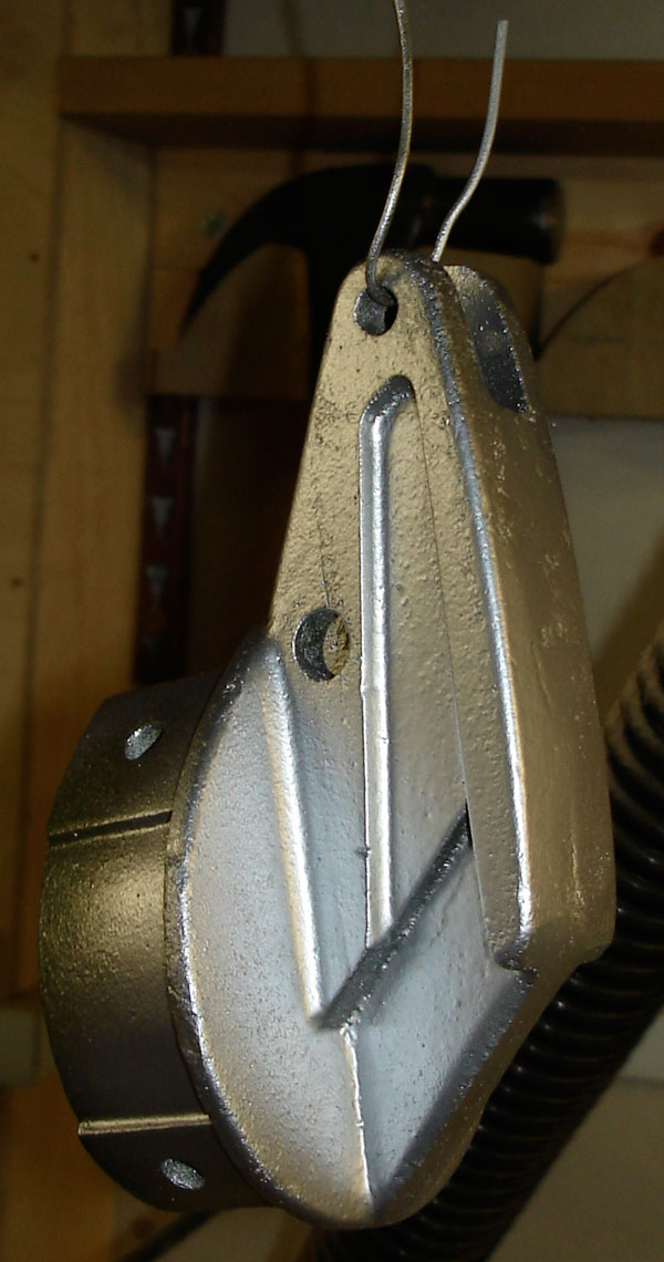 Cleaning was done by dipping in a hot caustic soda solution – this needs care as it very corrosive. Wear gloves and goggles, beware of the fumes, add the crystals to the water not vice versa, rinse everything in clean water and dispose of the used solution sensibly. You will be left with a chemically clean surface, so when dry give it a coat of etch primer (zinc chromate aerosol primer, available from www.lasaero.co.uk), followed by a coat of alloy wheel paint from a car accessory shop.