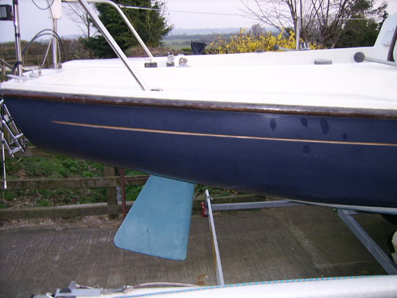 The skeg and rudder on Clareen, a 1984 mk3 Corribee. This is a standard factory-fitted skeg shape. Note the identically shaped rudder in both pictures.