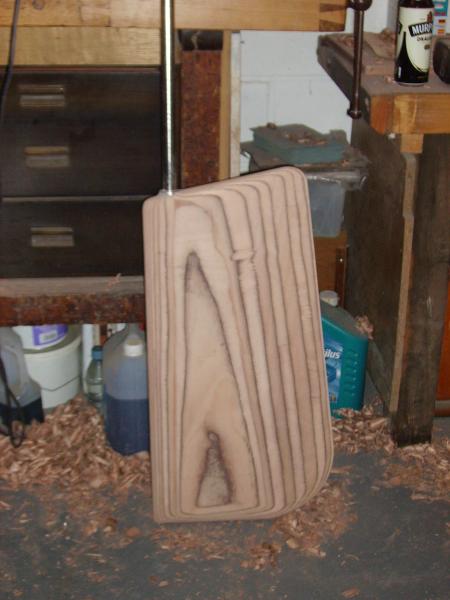 Im pleased I looked – not only because I found the corroded bolts – but because the skeg base was in fact exposed hardwood, which was quietly rotting away. About 25mm or so was easily removed before I got to solid hardwood inside the skeg. For some reason, the base of the skeg hadnt been glassed over – probably as the pintle assembly would not have fitted if it had done. The hardwood seems to extend up into the skeg for about 200mm – easy to determine this by hammer tapping.